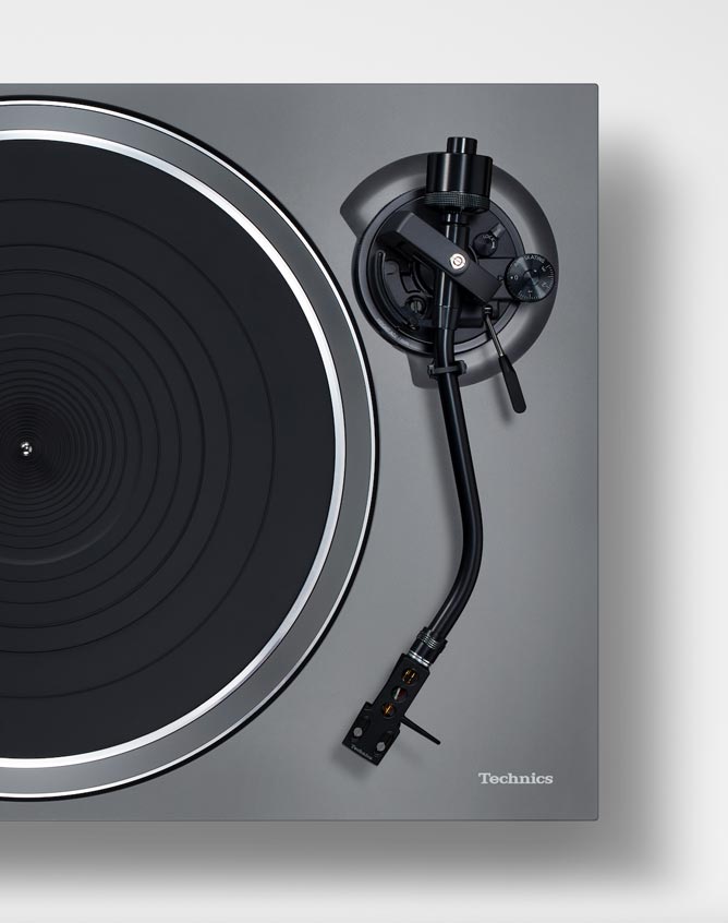 El brazo en forma de S con equilibrio estático, legado de Technics, utiliza un tubo de aluminio ligero de alta rigidez. La suspensión cardánica con cojinetes de alta precisión permite una lectura exacta del surco del vinilo.